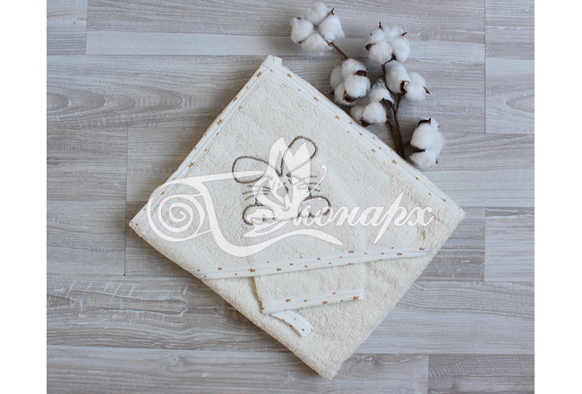 Полотенце с капюшоном и рукавичкой Вышивка (молочный) купить в Волжском.