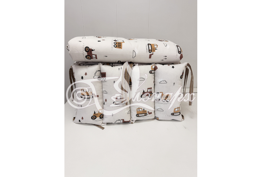- Бортик-заборчик стеганый плотно забит синтепухом (на замочках): - 2 шт. 60х34 см / - 2 шт. 120х34 см.