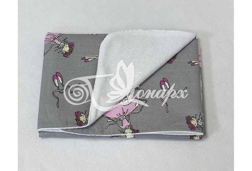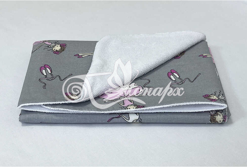 • Верхний слой – мулитон (изготовлена из - мягкой махры и непромокаемого слоя ПВХ). Благодаря такому строению на пеленке комфортно лежать (в отличие от клеенчатого или полиэтиленового непромокаемого слоя).