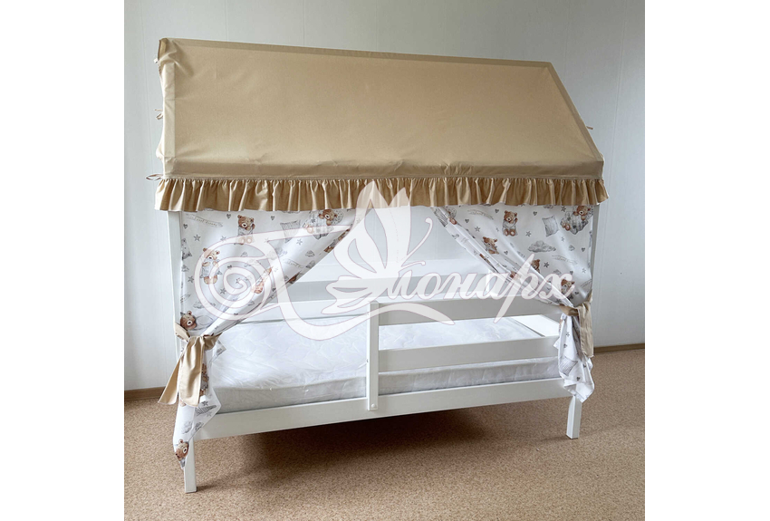 Крыша и шторы для кроватки домика ТД-51 купить в Волжском.Теги: комплект в кроватку домик, текстиль для домика, крыша для домика